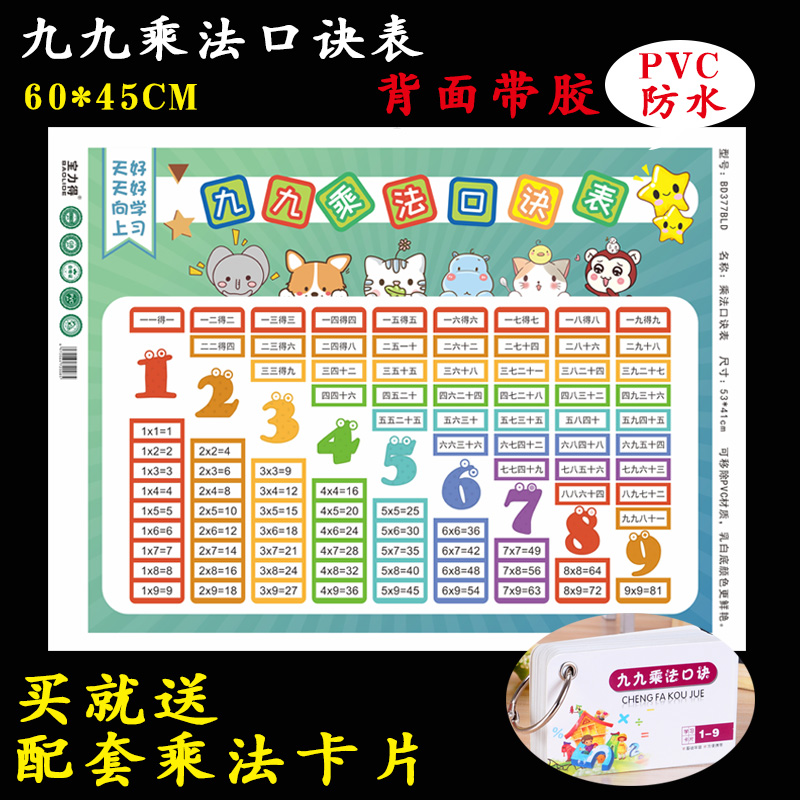 九九乘法口诀表挂图可移除3 8岁除法小学生二年级乘法口诀表墙贴